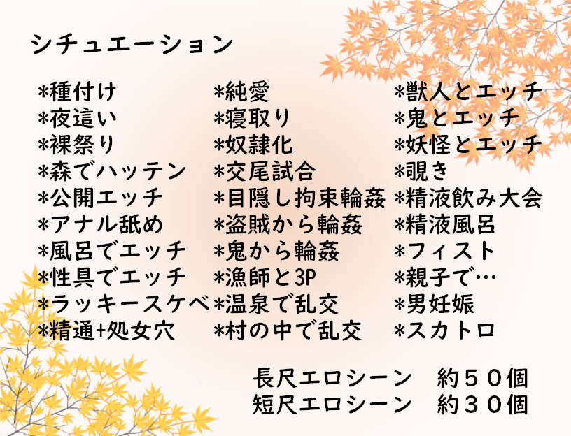 エッチシーン:長尺約50個、短尺約30個